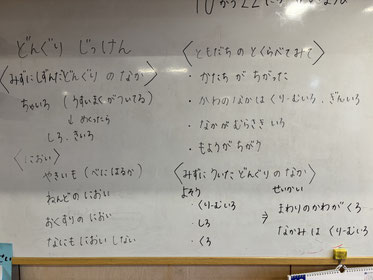 実際に目で見て、触って、匂いを嗅いでみたり、‘どんぐり実験’を通してどんぐりについて深く知れる良い機会になりました♪